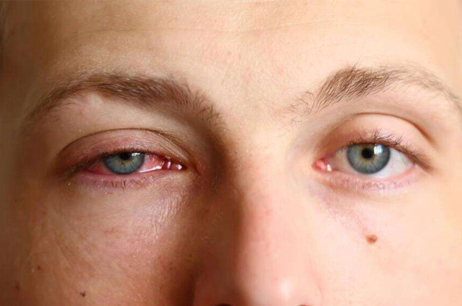 මෙම රෝගය නිසා ඇස්වල වේදනාකාරී තත්ත්වයක් සහ ඇස් විවෘත කිරීමේ අපහසුතාවය, කදුලු ගැලීම, කබ ගැලීම, සහ ආලෝකය දෙස බැලීමේදී ඇස්වල අපහසුතාවක් ඇතිවීම සිදුවිය හැකිය.